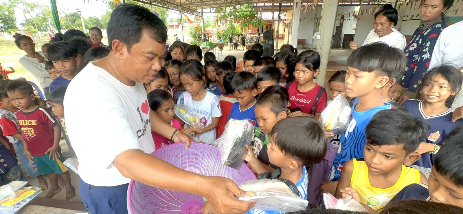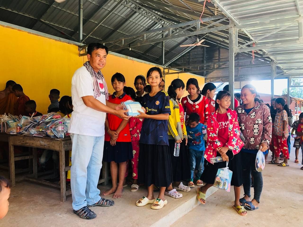– Together to give school supplies for motivating such as books, pens, pencils, uniforms, bags, slipper,